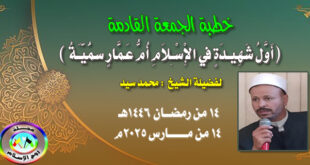 أكمل القراءة »خطبة بعنوان ( أَوَّلُ شَهِيدَةٍ فِي الْإِسْلَامِ أُمُّ عَمَّارٍ سُمَيَّةُ ) لفضيلة الشَّيْخِ مُحَمَّدِ سَيِّدِ