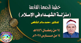 خطبة بعنوان ( منزلة الشهداء فى الإسلام) لفضيلة الدكتور محمد سالم الشافعى لتحميل الخطبة اضغط على الرابط أدناه “ manzelaalsohada