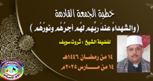 أكمل القراءة »خطبة بعنوان ( والشهداءُ عندَ ربِّهم لهُم أجرُهُم ونورُهُم ) لفضيلة الشيخ ثروت سويف