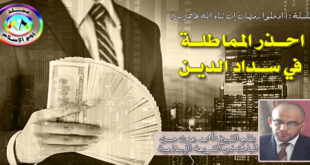 بقلم فضيلة الشيخ : أحمد عزت حسن الباحث فى الشريعة الإسلامية ومن الحرام الذي يجب أن نتطهر منه المماطلة بالدين إن خطر أخذ أموال الناس من غير ردّها عظيم، وهذا الدين يحجب الشهيد عن الجنة وقد حذّر النبي ﷺ من ذلك أشد التحذير فعن محمد بن عبدالله بن جحش: …