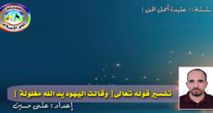 إعداد أ : على حسين المقال السابع من سلسلة ( عقيدة أهل الحق ) قال الخازن : ” واعلم أن غل اليد وبسطها مجاز عن البخل والجود بدليل قوله تعالى لنبيه صلى الله عليه وسلم { ولا تجعل يدك مغلولة إلى عنقك ولا تبسطها كل البسط } والسبب …