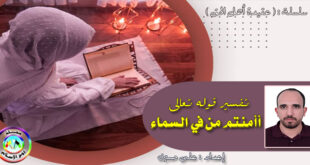 إعداد أ : على حسين المقال الثانى من سلسلة ( عقيدة أهل الحق ) قال الإمام القرطبي : وقيل: هو إشارة إلى الملائكة. وقيل: إلى جبريل وهو الملك الموكل بالعذاب. قلت: ويحتمل أن يكون المعنى: أأمنتم خالق من في السماء أن يخسف بكم الأرض كما خسفها بقارون]. …