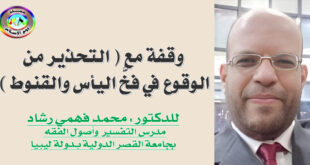بقلم الدكتور : محمد فهمي رشاد مدرس التفسير وأصول الفقه بجامعة القصر الدولية بدولة ليبيا قال ابن الجوزي – رحمه الله -: ” اليأسُ: القَطعُ على أن المطلوبَ لا يتحصل لتحقيق فواته. ” وقال الشوكاني – رحمه الله -: ” القنوطُ: الإياسُ من الرحمة. “ فاليأس: هو انقطاع الأمل بشكل …