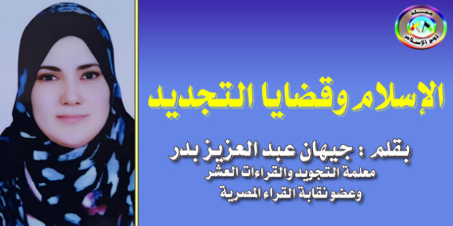 بقلم : جيهان عبد العزيز بدر معلمة التجويد والقراءات العشر وعضو نقابة القراء المصرية لا شك أن الإسلام صالح لكل زمان ومكان وهذا لا يتعارض أبدا مع تجديد الخطاب الديني بما يتناسب مع أحداث العصر وذلك للخروج من دوائر الجمود المنغلقة على المجتمع ولكن نقف هنا برهه ، لكى نوضح …