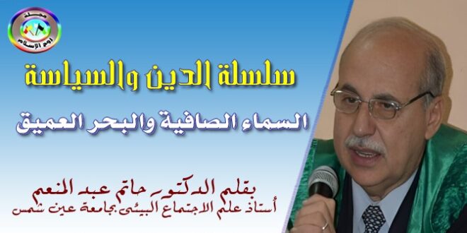 بقلم الدكتور: حاتم عبد المنعم أستاذ علم الاجتماع البيئى بجامعة عين شمس سلسلة الدين والسياسة السماء الصافية والبحر العميق المقال الثالث: هناك اختلافات جذرية وجوهرية بين العلوم الدينية والعلوم السياسية : حيث إن مبادئ وقضايا الأديان بوجه عام واضحة وظاهرة وثابتة كمبادئ عامة ولكن قضايا السياسة ترتبط بمصالح متغيرة بعضها …