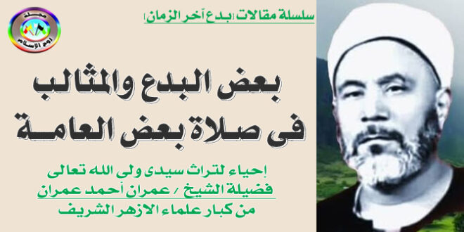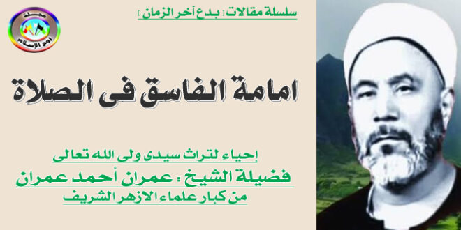 المقال العاشر من سلسلة مقالات (بدع آخر الزمان) إحياء لتراث سيدى ولى الله تعالى فضيلة الشيخ / عمران أحمد عمران من كبار علماء الازهر الشريف ومن مثالبهم العوام “الامامة بالفاسق فى الصلاة” فيأتمون ممن يرونه فاسقاً في صلاته، كمعرفة انه يحب التقدم لغير غرض شرعى لنص الفقهاء على ان إمامة …
