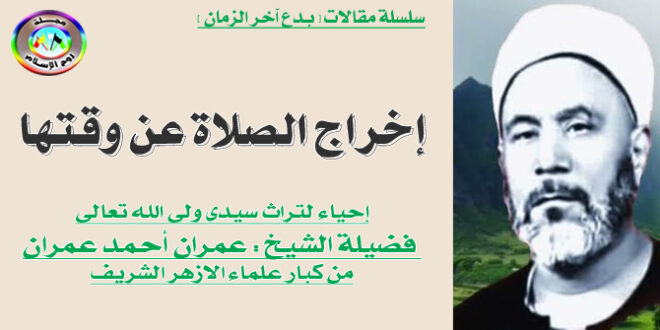 المقال التاسع من سلسلة مقالات (بدع آخر الزمان) إحياء لتراث سيدى ولى الله تعالى فضيلة الشيخ / عمران أحمد عمران من كبار علماء الازهر الشريف ومن بدعهم إخراج الصلاة عن وقتها، وهذا أمر لم يتخلف عنه في بلادنا عالم ولا جاهل، حتى بلغ التساهل في شأنها تأخير الكل لآخر النهار، …