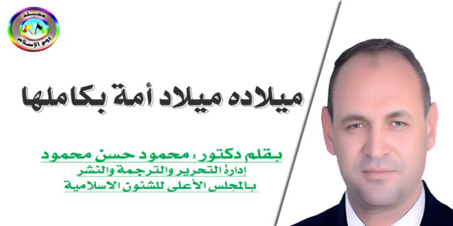 بقلم دكتور : محمود حسن محمود إدارة التحرير والترجمة والنشر بالمجلس الأعلى للشئون الاسلامية لم يكن ميلاد النبى صلى الله عليه وسلم ميلاد واحد من البشر وإنما كان ميلاد امة بكاملها معنى ومبنى . فكان العالم كله بحاجة إلى سيدنا محمد صلى الله عليه وسلم ليصحح المفاهيم ويغير القناعات …