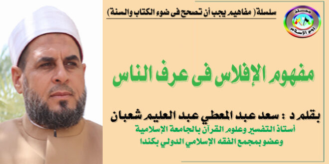 المقال الثالث من سلسلة ( مفاهيم يجب أن تصحح فى ضوء الكتاب والسنة ) بقلم أ . د / سعد عبد المعطي عبد العليم شعبان أستاذ التفسير وعلوم القرآن بالجامعة الإسلامية وعضو بمجمع الفقه الإسلامي الدولي بكندا بسم الله الرحمن الرحيم الحمد لله رب العالمين والصلاة والسلام على المبعوث رحمة …