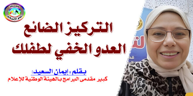 بقلم : إيمان السعيد ( كبير مقدمى البرامج بالهيئة الوطنية للإعلام ) ضعف التركيز، السرحان، التشتت مشكلات شائعه تواجه الكثير من الأمهات، فصعف التركيز مصطلح عام الا انه استخدم بشكل كبير في الأوانه الاخيره ليصف درجات متنوعه من نقص الانتباه لدي الأطفال. وهنا يشعر الاهل بالقلق تجاه ضعف تركيز الطفل …