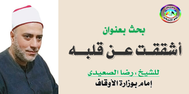 مبحث بعنوان ( أشققت عن قلبه ) للشيخ : رضا الصعيدى لما غضب النبي وقال لأُسَامَة: أَفَلَا شَقَقْتَ عَنْ قَلْبِهِ؟ وكيف يصنع من حكم على بطلان عقائد الناس بـ(لا إله إلَّا اللهُ) يوم القيامة ؟ وكيف نرد على أصحاب الفكر المنحرف في هذه المسألة ؟ وكيف كانت رحمات الله الواسعة …