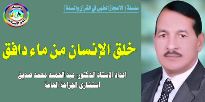 المقال الرابع والعشرون من سلسلة (الاعجاز الطبى في القرآن والسنة) اعداد الاستاذ الدكتور/ عبد الحميد محمد صديق استشارى الجراحة العامة قال تعالى: ” فلينظر الإنسَانُ مِمَّ خُلِقَ * خُلِقَ مِن مَّا دَافِقٍ * يَخْرُجُ مِنْ بَيْنِ الصلب والترايب ” . الطارق: 1٥-١٧ ومن الدلالات العلمية للآيات القرآنية الثلاث: أولاً : …