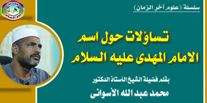 المقال السادس والعشرون من سلسلة (علوم آخر الزمان) بقلم فضيلة الشيخ الاستاذ الدكتور / محمد عبد الله الأسوانى كثير من الناس يقولون ان اسم الامام المهدى هو محمد بن عبد الله وان اسمه كاسم النبى صلى الله عليه وسلم، ولكن لو كان هذا صحيحاً ـ وهو ان اسمه هو محمد …