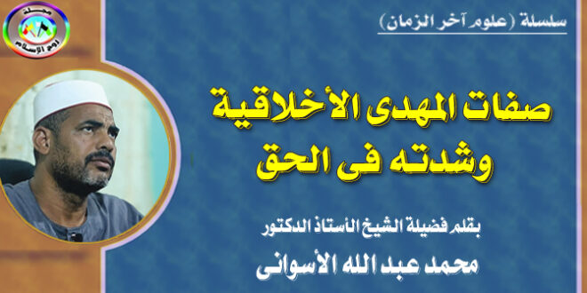 المقال التاسع والعشرون من سلسلة (علوم آخر الزمان) بقلم فضيلة الشيخ الاستاذ الدكتور / محمد عبد الله الأسوانى نصت الاحاديث على ان الامام المهدى يشبه النبى صلى الله عليه وسلم فى الخُلُق ولا يشبهه فى الخلقة اى الشكل. واعظم شئ مُدح فى النبى صلى الله عليه وسلم هى اخلاقه قال …