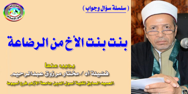 ( سلسلة سؤال وجواب ) يجيب عنها فضيلة أد / مختار مرزوق عبدالرحيم العميد السابق لكلية أصول الدين جامعة الأزهر فرع أسيوط سؤال والجواب عنه :أرسل إلي أحد الأخوة هذه المسألة حكم الزواج من بنت بنت العم مع العلم أن خالها رضع مع من يريد الزواج منها فترة الرضاع كامله …