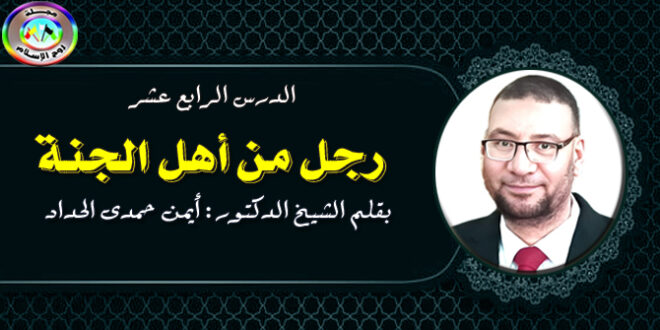 بقلم فضيلة الشيخ الدكتور : أيمن حمدى الحداد الدرس الرابع عشر : «رجل من أهل الجنة» الحمد لله رب العالمين، والصلاة والسلام على أشرف الخلق أجمعين سيدنا محمد وعلى آله وأصحابه وأتباعه إلى يوم الدين؛ أمابعد: فيا أيها الصائمون: سوف نعيش فى هذا اللقاء الطيب المبارك بمشيئة الله …