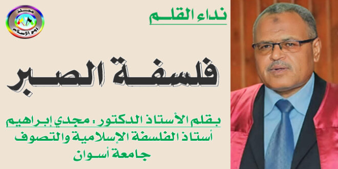 بقلم الأستاذ الدكتور : مجدي إبراهيم أستاذ الفلسفة الإسلامية والتصوف جامعة أسوان هل يصح أن تتقدّم كلمة الفلسفة على الصبر، وكيف يكون للصبر فلسفته؟ الحقيقة أن كل ما يتصل بالإنسان من قريب أو من بعيد، وراؤه فلسفة، والصبر كمقوم روحي هو من خصائص الإنسان، والفلسفة تتوجه إلى الإنسان : عقله …
