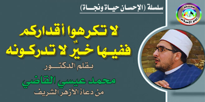 المقال الثالث من سلسلة ( الإحسان حياة ونجاة ) بقلم الدكتور : محمد عيسي القاضي من دعاة الأزهر الشريف اجعل قلبك مُحسناً ، ولسانك حسناً واجعل دوماً في قلبك يتردد قول الحق سبحانه ” وعسي أن تكرهوا شيئاً وهو خير لكم وعسي أن تحبوا شيئاً وهو شر لكم والله يعلم …