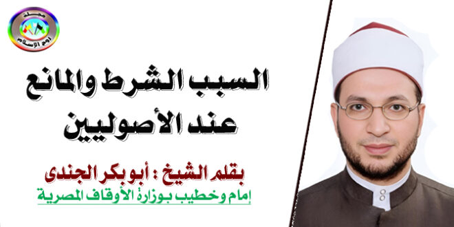 بقلم فضيلة الشيخ : أبو بكر الجندى السبب هو: كل أمر جعله الشارع علامة على وجود الحكم، وعدمه على عدم وجود الحكم. أقسام السبب: ـ سبب ليس في قدرة المكلف ولا فعلاً له، كدلوك الشمس سبب لوجوب الصلاة. ـ سبب في قدرة المكلف، وهو فعل له، كالسفر لإباحة الفطر. …