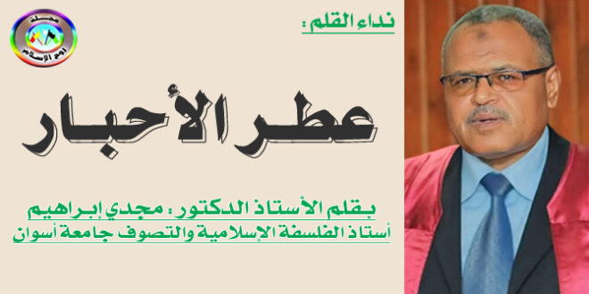 بقلم الأستاذ الدكتور : مجدي إبراهيم أستاذ الفلسفة الإسلامية والتصوف جامعة أسوان عطرُ الأحبار كعطر الأحباب : جمالُ تستنشقه الروح، لكنه يعز. ليس في المقدور أن ينال في كل حال، ولا في أي حال. مَنْ ينال عطر الروح يتألم ويعاني. والمعاناة ليست حالاً دائمة وكذلك الألم. إن الصبابة التي …