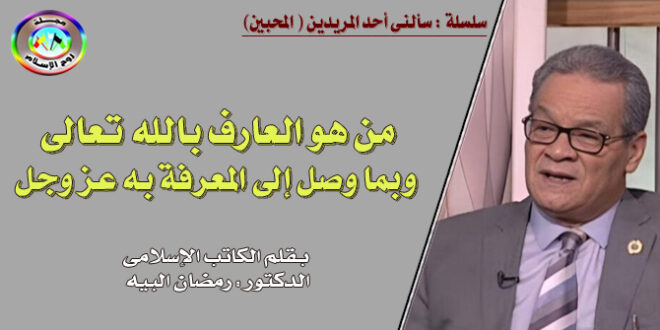 المقال من سلسلة : سألنى أحد المريدين ( المحبين ) . بقلم الكاتب والداعية الإسلامى الدكتور : رمضان البيه سألني أحد المريدين قال : من هو العارف بالله تعالى ،وبما وصل إلى المعرفة به عز وجل ؟ فأجبته : العارف بالله تعالى هو المؤمن التقي النقي الذي أقبل على الله …