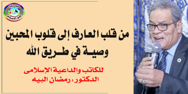 بقلم الكاتب والداعية الإسلامى الدكتور : رمضان البيه ( وصيتي لكل أحبابي وأبنائي ومريديني ولكل من يعرفني ) * حافظوا على الطهارة والوضوء والصلاة في وقتها والأوراد والأذكار . * إحفظوا جوارحكم من المعصية وعليكم بالأدب مع الله تعالى ورسوله والخَلق * إلزموا خط الإستقامة وعليكم بالإحسان والجود والكرم وعفة …