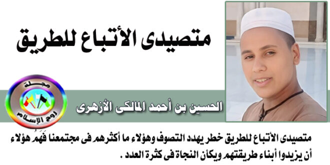 بقلم الشيخ : الحسين بن أحمد المالكى الأزهرى متصيدى الأتباع للطريق خطر يهدد التصوف وهؤلاء ما أكثرهم فى مجتمعنا فَهَمُ هؤلاء أن يزيدوا أبناء طريقتهم ويكأن النجاة فى كثرة العدد وقد نبهت كثيرا من خطورة ذلك والأدهى والأمر أن يكون هؤلاء المتصيدين ممن عُرف عنهم العلم أو هم ممن اشتهروا …