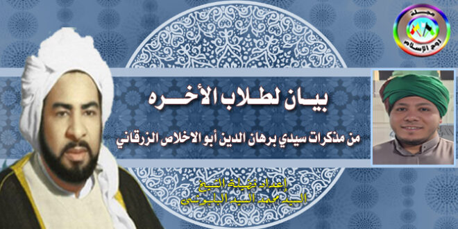 يقدمها لكم : الشيخ السيد محمد البلبوشي خويدم الطريقة الإخلاصية – خطيب بوزارة الأوقاف قَالَ اللهُ تَعَالَى :﴿ بَقِيَّةُ اللهِ خَيْرٌ لَكُم ﴾. ( تَنْوِيرٌ ) إِذَا لَمْ تَزْهَدْ فِى الدُّنْيَا الدَّنِيَّةِ ، فَأَنْتَ بَعِيدٌ عَنْ خَيْرِ الآخِرَةِ العَلِيَّةِ . ( تَحْرِيرٌ ) خُلُوُّ قَلْبِكَ مِنْ المَعْصِيَةِ لِلْمَوْلَى أَحَقُّ بِكَ …