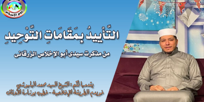 يقدمها لكم : الشيخ السيد محمد البلبوشي خويدم الطريقة الإخلاصية – خطيب بوزارة الأوقاف قَالَ اللهُ تَعَالَى :﴿ فَاعْلَمْ أَنَّهُ لَاْ إِلَهَ إِلّا اللهُ ﴾. ( حَقِيقَةٌ ) أَحَدِيَّةُ الذَّاتِ غَيْبٌ فِى الأَزَلِ وَوَحْدَانِيَّتُهَا ظُهُورٌ فِى الأَبَدِ . وَالوَاحِدُ القَدِيمُ مَالَا أَوَّلُ لَهُ وَلَاْ آخِرَ . ( دَقِيقَةٌ ) …